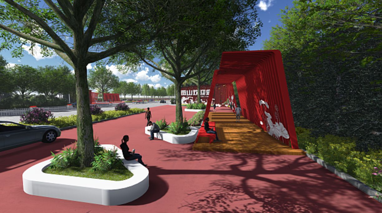 煙臺(tái)大南山生態(tài)公園福臨夼景區(qū)建筑組群主要分為兩大部分,入口服務(wù)區(qū)和特色小鎮(zhèn)區(qū),...