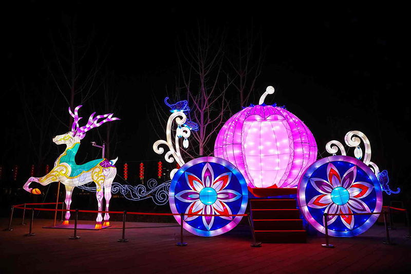 此次燈會布局以園博園南門、北門、東門為主展點,以園內園北路、園南路和中州路環形線路為主展區域,在同心湖上布置“鄭州風韻”、“秀美鄭州”、“荷塘月色”等大型水上燈組,呈現出波光粼粼,光影爛漫的唯美景象。眾多主題的燈廊、燈柱、燈雕畫廊將鄭州園博園打造成為流光溢彩、奇幻曼妙的彩燈世界。