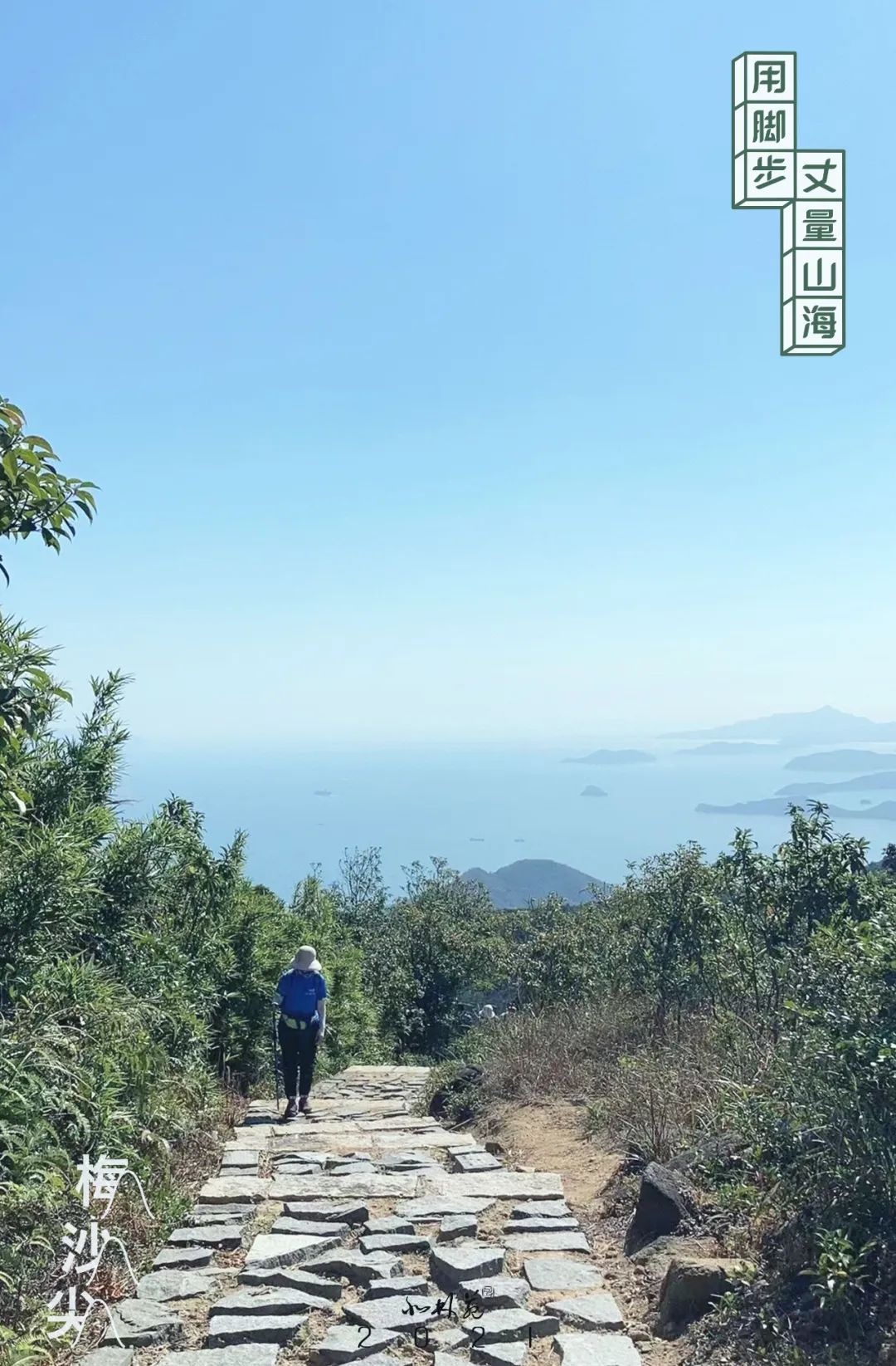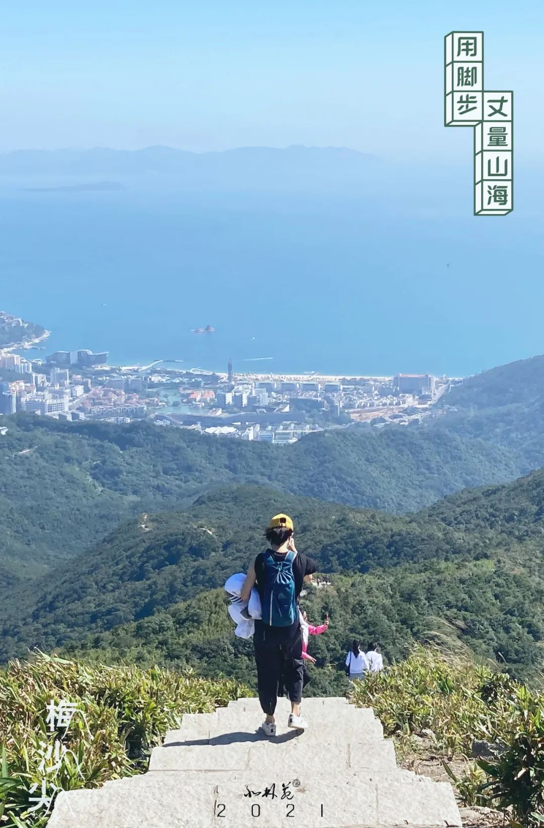 從公園登山口出發(fā),走主峰科考線到達(dá)山頂。這條由北林苑設(shè)計(jì)的風(fēng)景絕美的山海徑在遵循生態(tài)保護(hù)、旅游優(yōu)先、集約利用等原則的前提下,根據(jù)現(xiàn)有海岸線及山體等自然資源,拓展綠道功能,創(chuàng)造性地融合了防火道、護(hù)林道、登山道、救援道、林業(yè)科研道、景觀道六道功能。