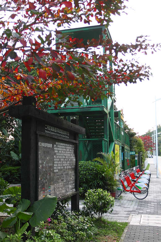 該段保留了原特區(qū)“二線關(guān)”的石板路、鐵絲網(wǎng)及邊境軍事設(shè)施。昔日的“二線鐵絲網(wǎng)”,今日則成為綠色蔓延、花草絢爛的自然野趣之地。行走在綠道上,不僅可以觀賞廢棄集裝箱建成的服務(wù)點(diǎn)和興趣點(diǎn),廢棄枕木做的綠道標(biāo)識牌,還可以觀賞摩天樓宇和城市天際線,是廣大市民冬日休閑的好去處。
