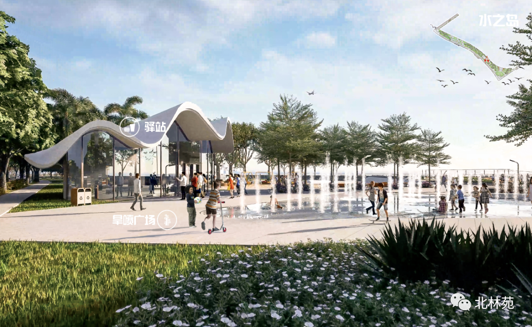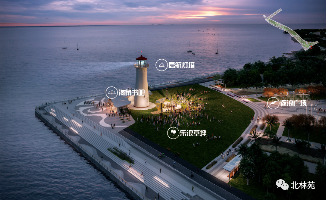 因此設計提出“藍綠共舞·藝潮海岸”的設計理念,浮天滄海,椰林海風,以舒適、生態的濱海環境,創造令人流連忘返的休閑空間。